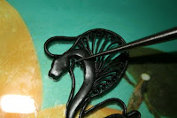 С помощью скальпеля отрезаем и сглаживаем, а заодно и соединяем хвостики завитка.